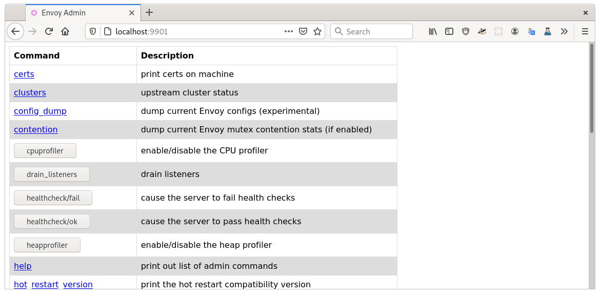 The optional admin interface provided by Envoy allows you to view configuration and statistics, change the behaviour of the server, and tap traffic according to specific filter rules.